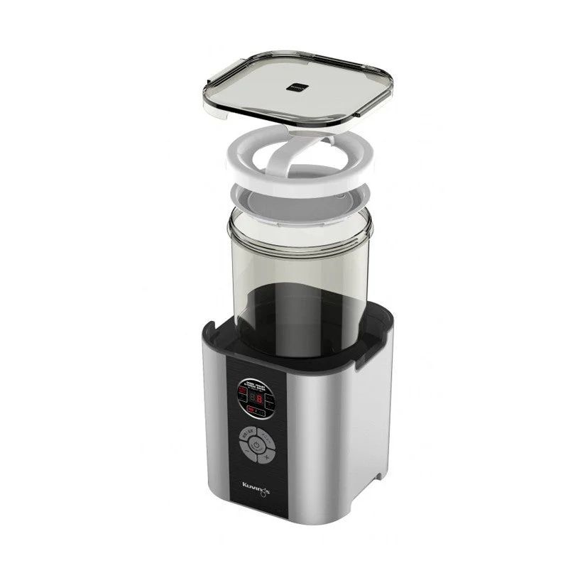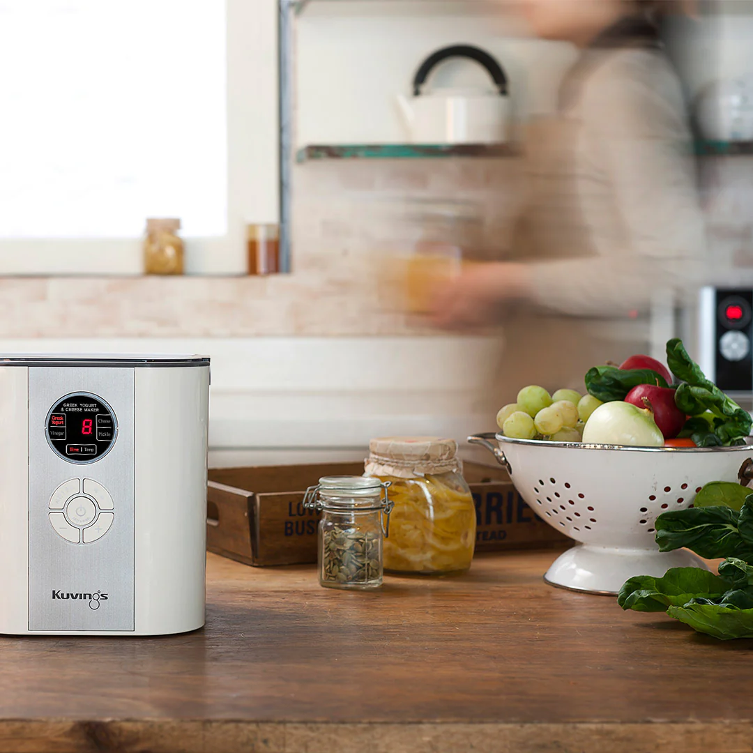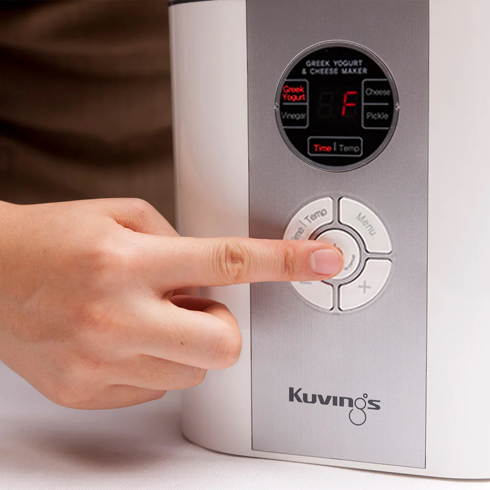 Интелигентният уред на Kuvings за приготвяне на кисело мляко и сирена е истинска кулинарна магия. С обема си от 2 литра и вградените смарт контроли домашната ферментация е по-лесна от всякога досега. Екологичните материали и “ever green” дизайнът превръщат приготвените здравословни изкушения в божествена наслада. Изпитайте радостта от домашно приготвената храна без вредни съставки и консерванти. Произведен в Корея.
