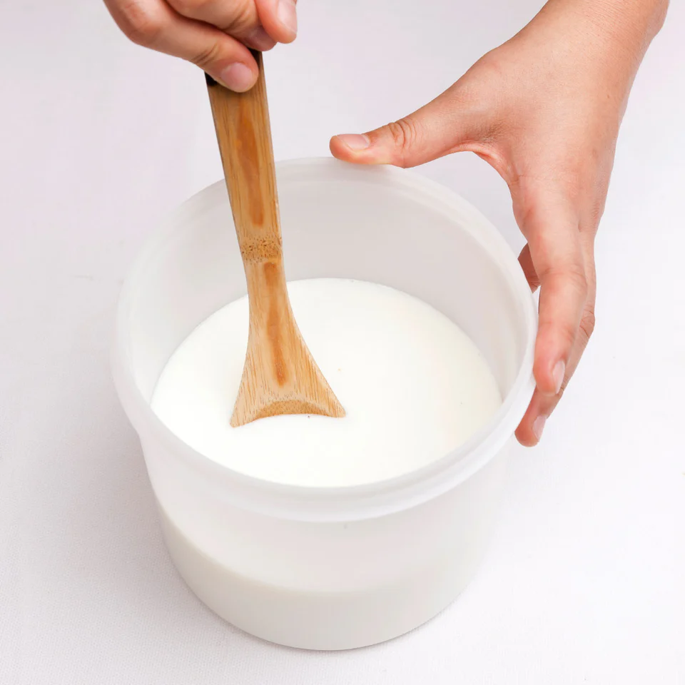 Сипете млякото в контейнера за ферментация, добавете закваската и разбъркайте добре.