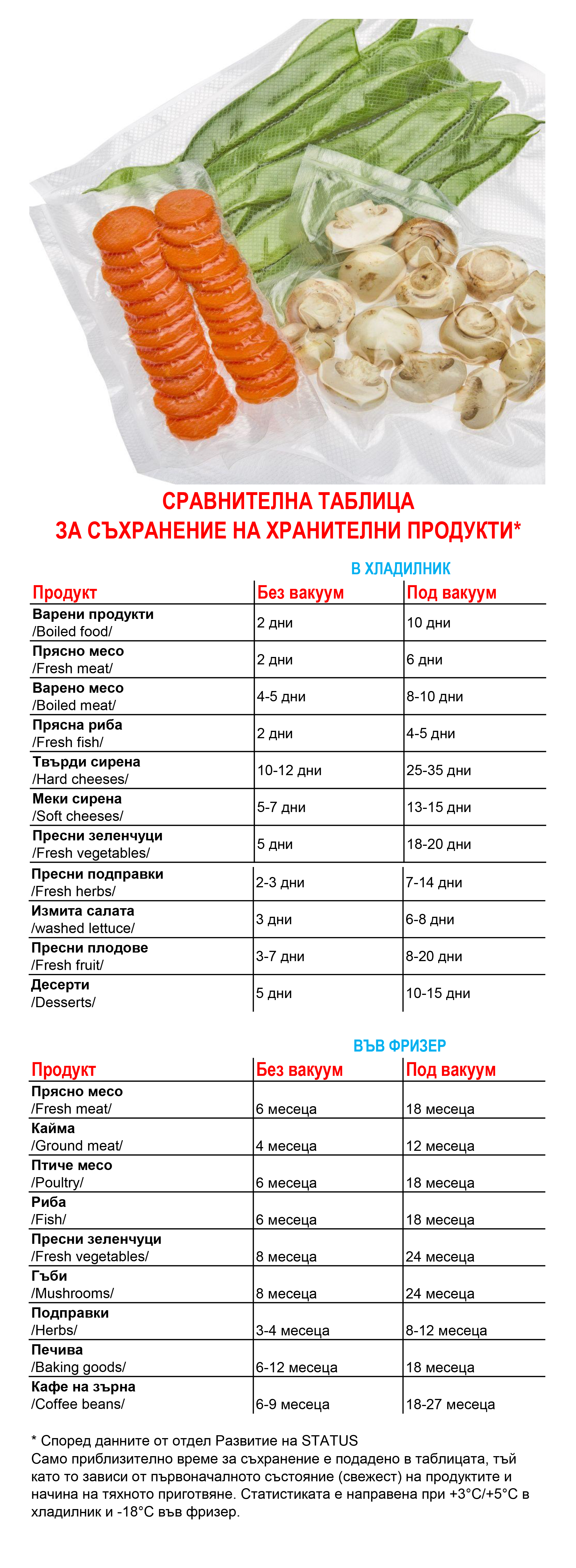 Въпреки че вакуумът отлага развалянето на храната, той не може да го предотврати, така че винаги дръжте хранителните си продукти в хладилника.