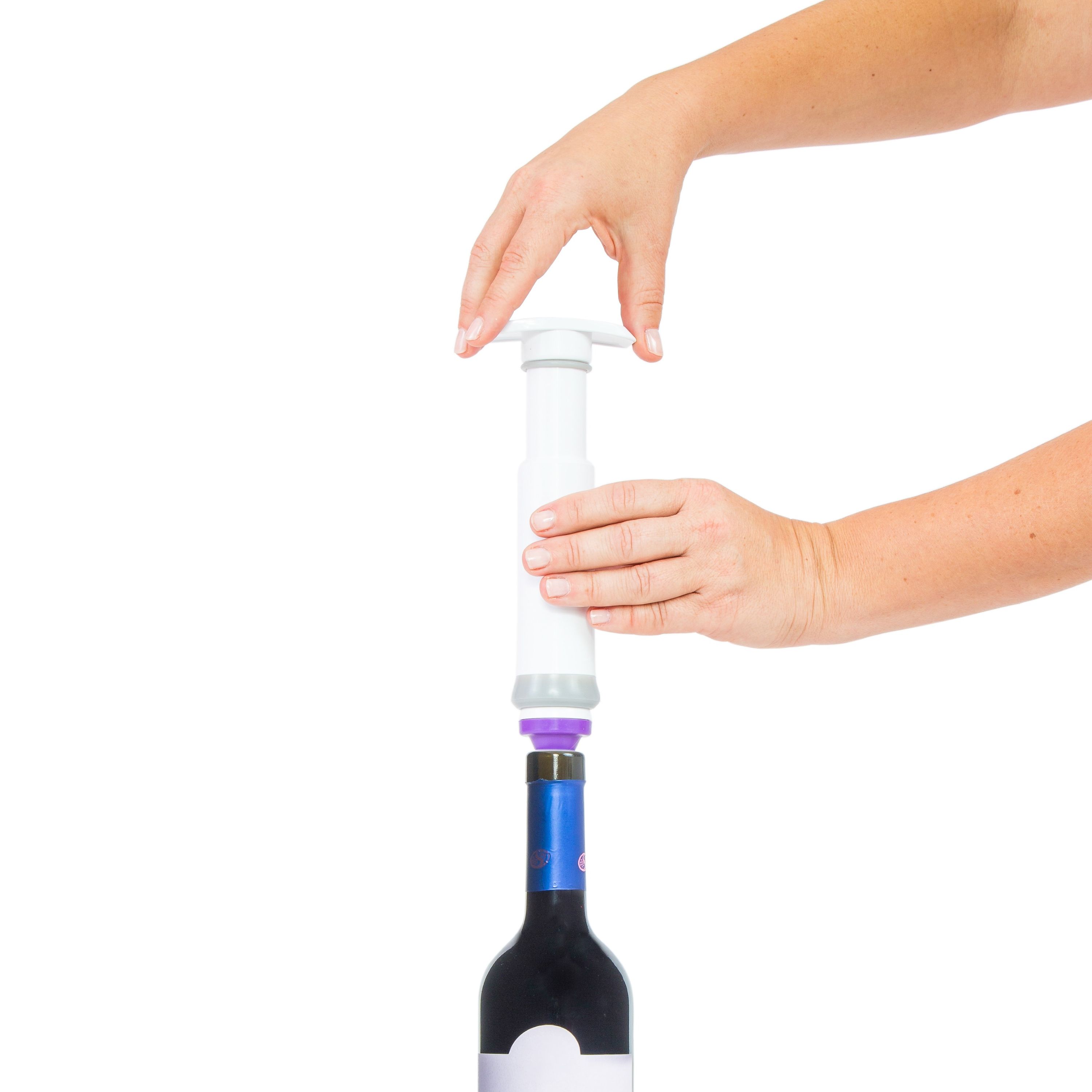 Вакуумните тапи запазват качеството на вече отвореното вино или други натурални течности. Използвайте ръчната помпа, за да отстраните въздуха от частично изпразнената бутилка, за да предотвратите окисляването. Вашето вино или сок ще бъдат също толкова ароматни след няколко дни.