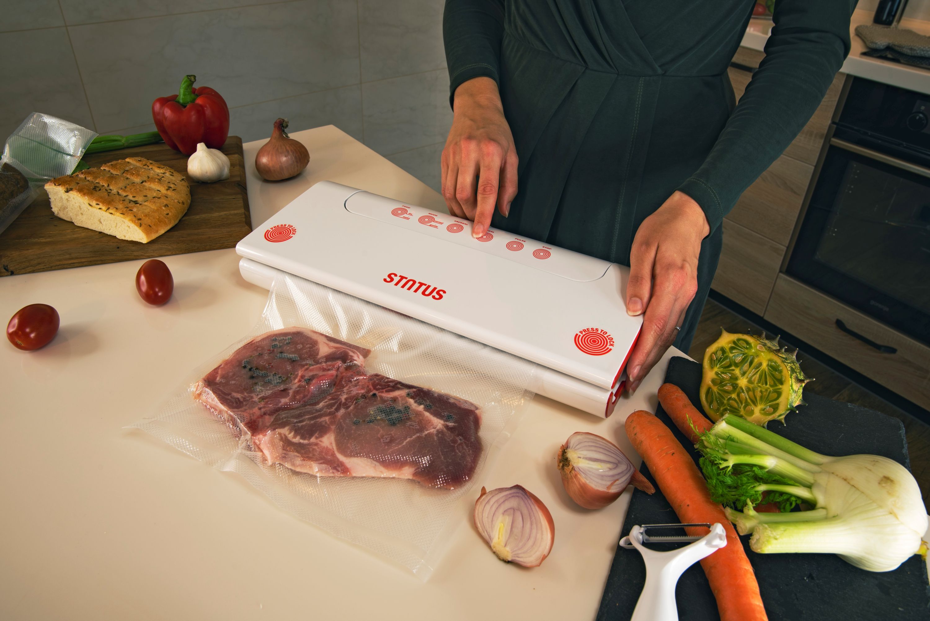 Използването на качествени вакуумни торбички е ключът към безпроблемното вакуумно запечатване на храната. Вакуумните торбички STATUS са сред най-висококачествените на пазара. Те се отличават по три критерия, които осигуряват безопасно съхранение на храна и оптимална работа на уреда: